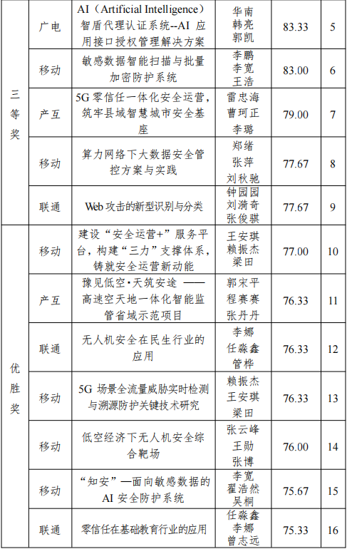 1、本次竞赛赛项有个人赛、团队赛、方案赛:个人赛奖项设置为一等奖 3 名、二等奖 5 名、三等奖 7 名、优胜奖 10 名;团队赛奖项设置为一等奖 1 名、二等奖 1 名、三等奖 1 名;方案赛奖项设置为一等奖 1 名、二等奖 3 名、三等奖 5 名、优胜奖13名。排名按总成绩从高到低排序。